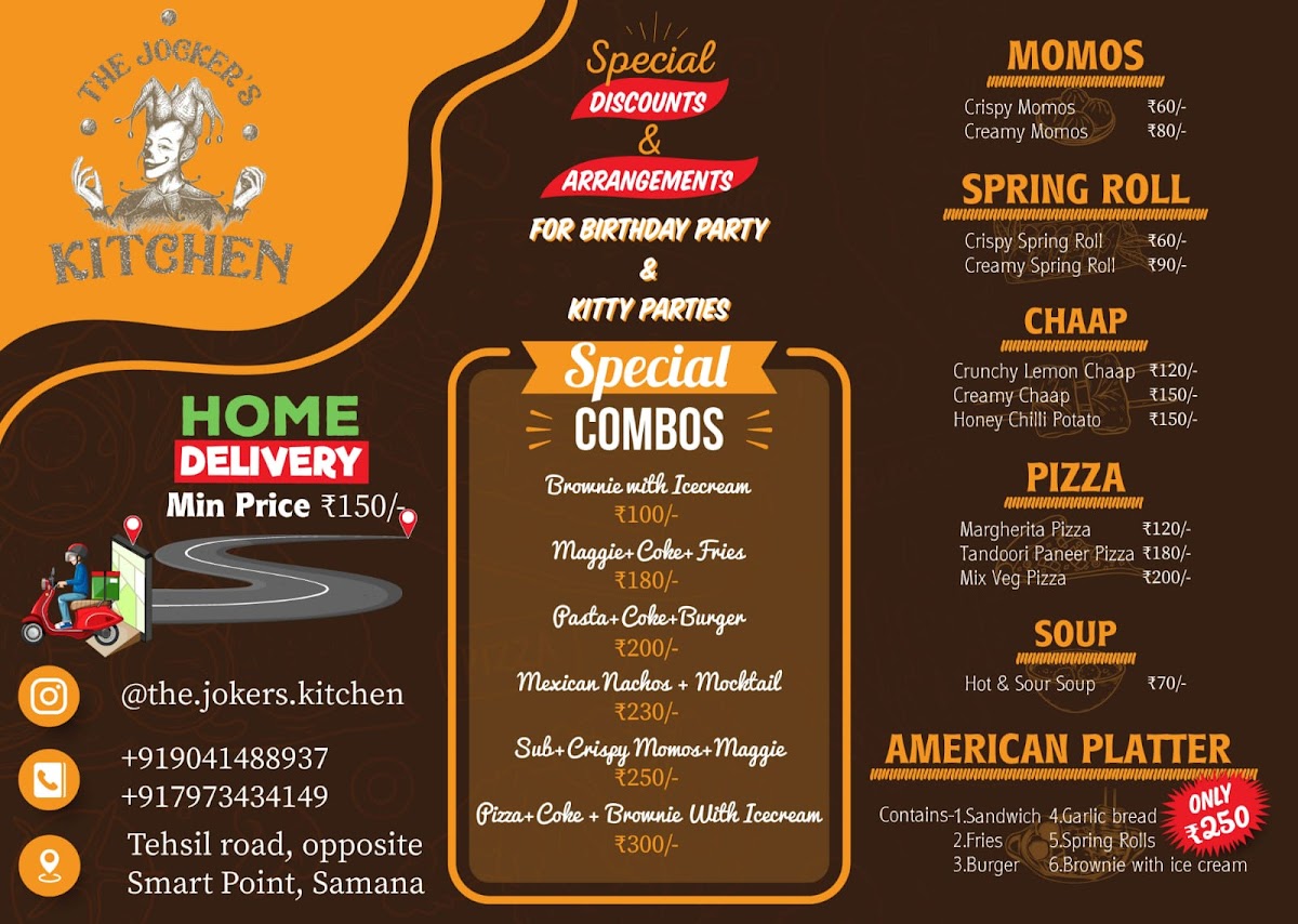 Welcome to The Joker's Kitchen, a vibrant cafe located on Tehsil Road, Waraich Colony in Samana, Punjab. This bustling eatery has quickly become a local favorite with its captivating ambiance and diverse menu that promises to thrill your taste buds.